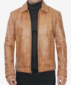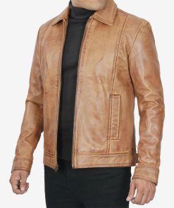 Men’s Brown Shirt Collar Leather Jacket