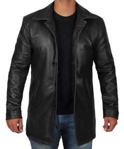 Men’s Button Down Real Leather Black Car Coat