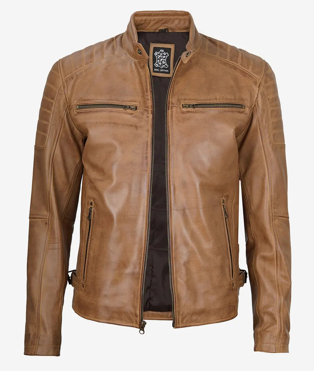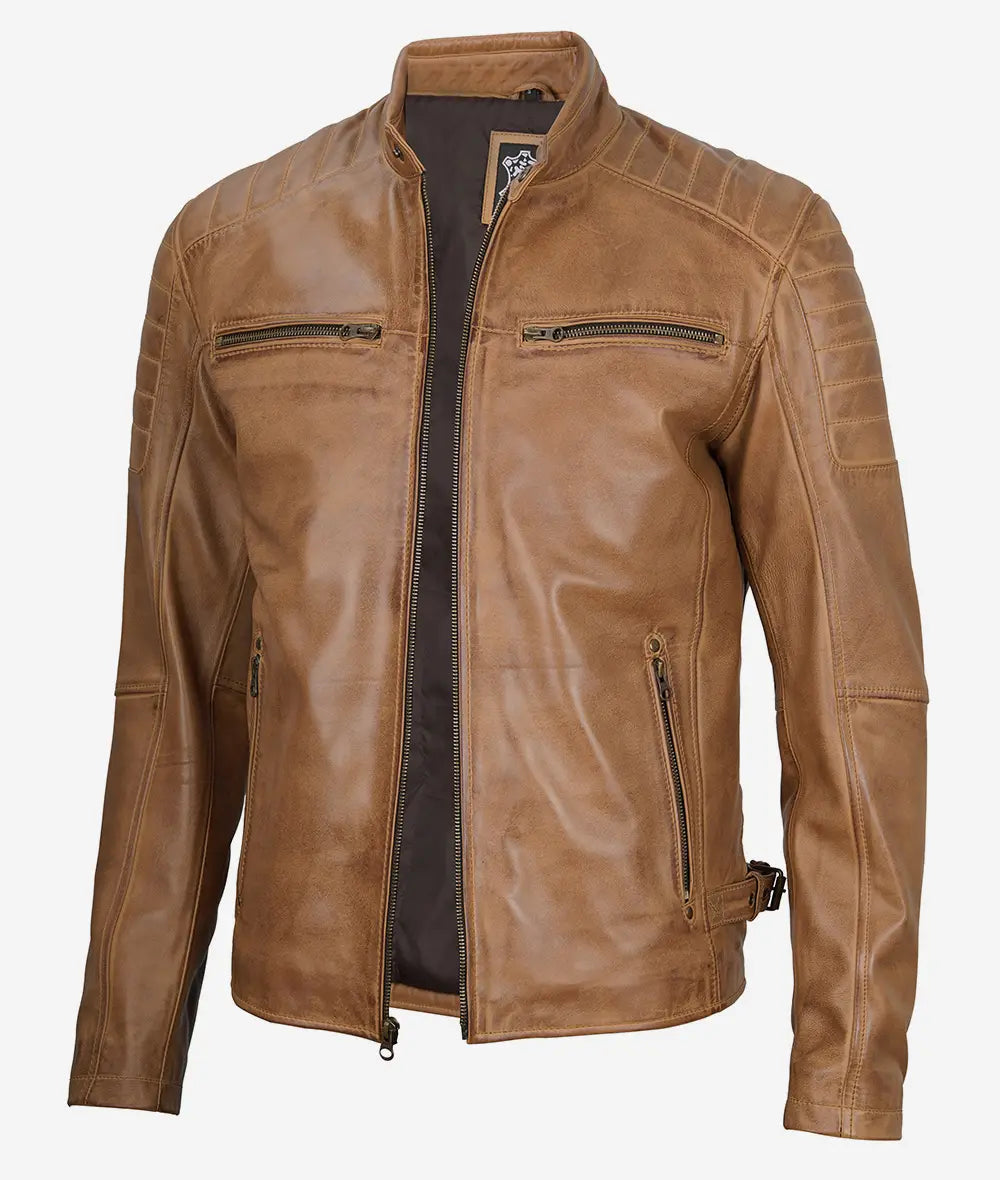Men’s Cafe Racer Camel Brown Leather Jacket