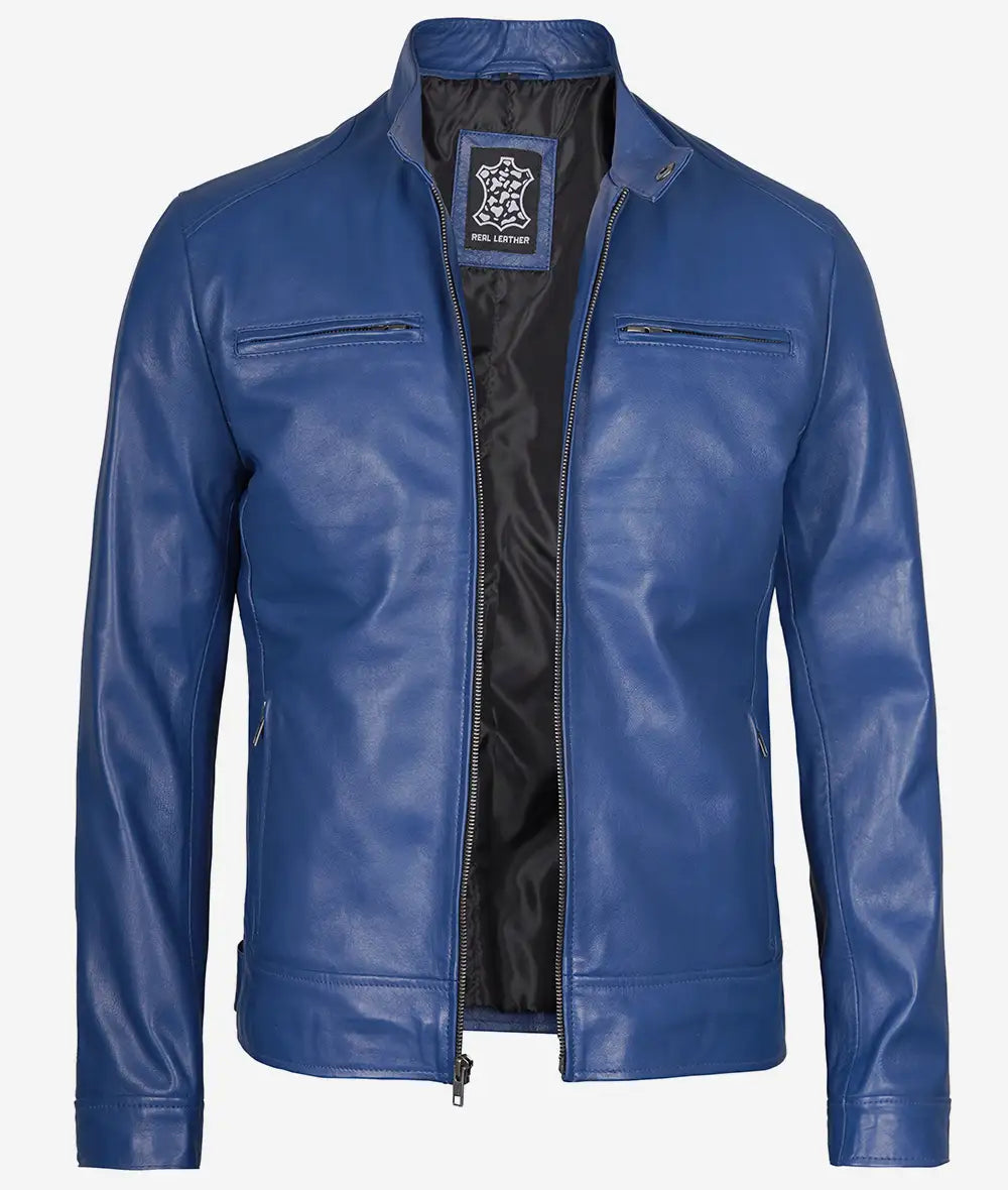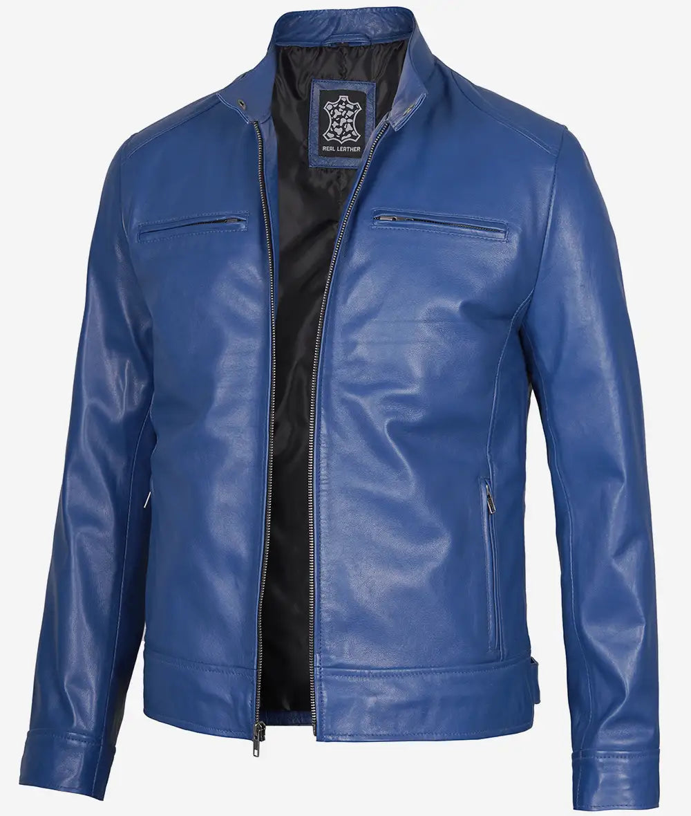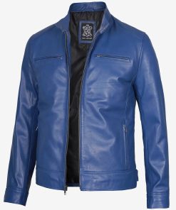 Men’s Cafe Racer Classic Blue Leather Jacket