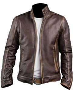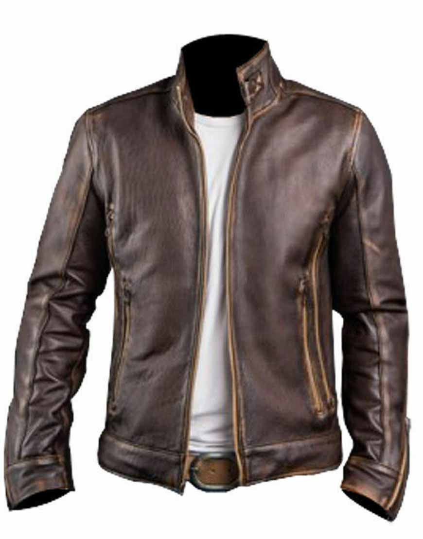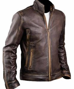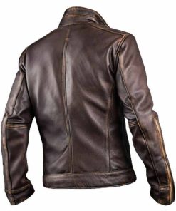 Men’s Cafe Racer Distressed Leather Jacket