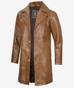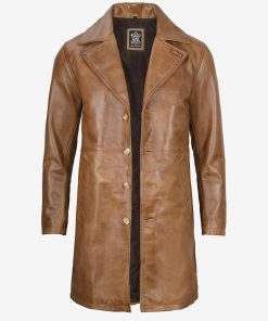 Men’s Camel Brown Real Leather Car Coat