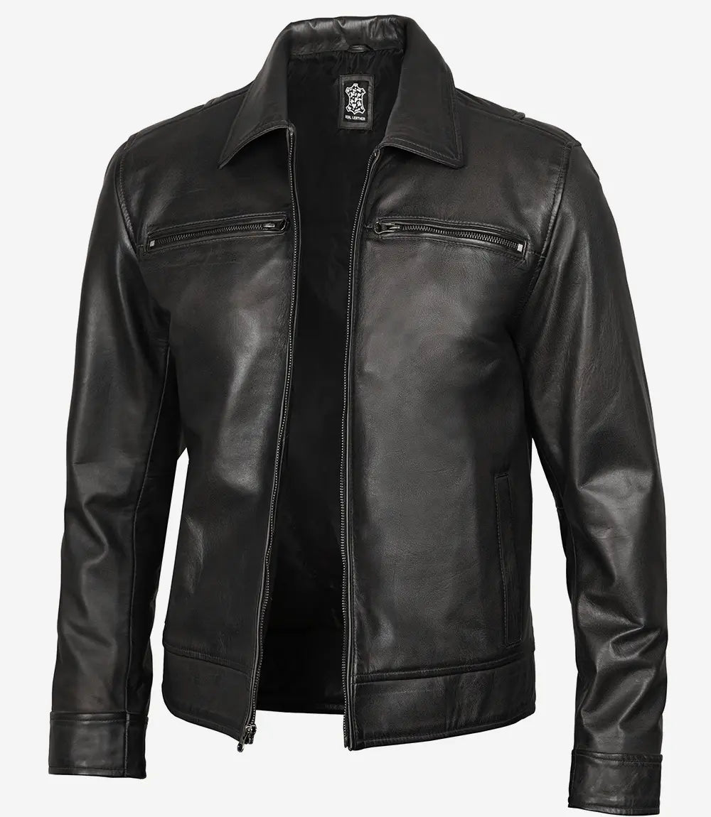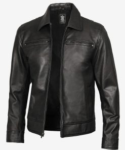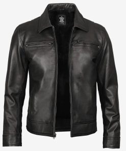 Men’s Classic Shirt Style Black Leather Jacket