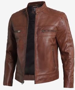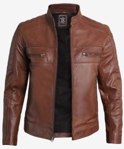 Men’s Cognac Brown Cafe Racer Leather Jacket
