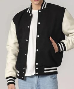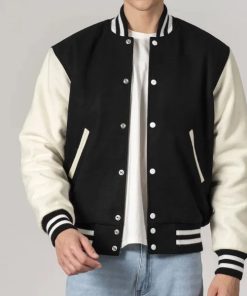 Men’s Customizable Black & White All-Wool Varsity Jacket