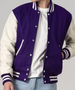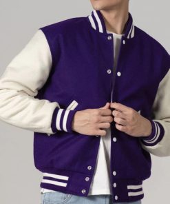 Men’s Customizable Purple & White All-Wool Varsity Jacket