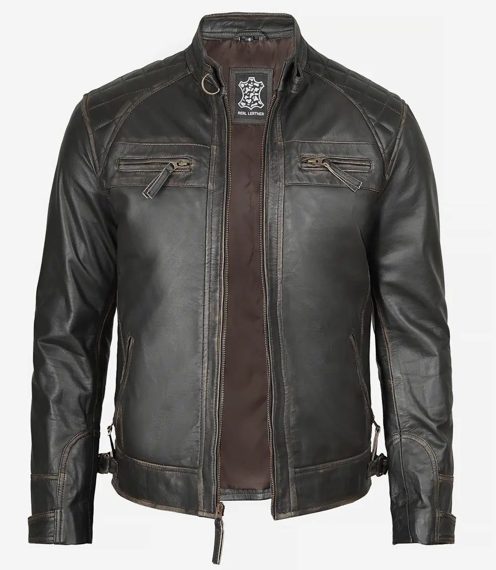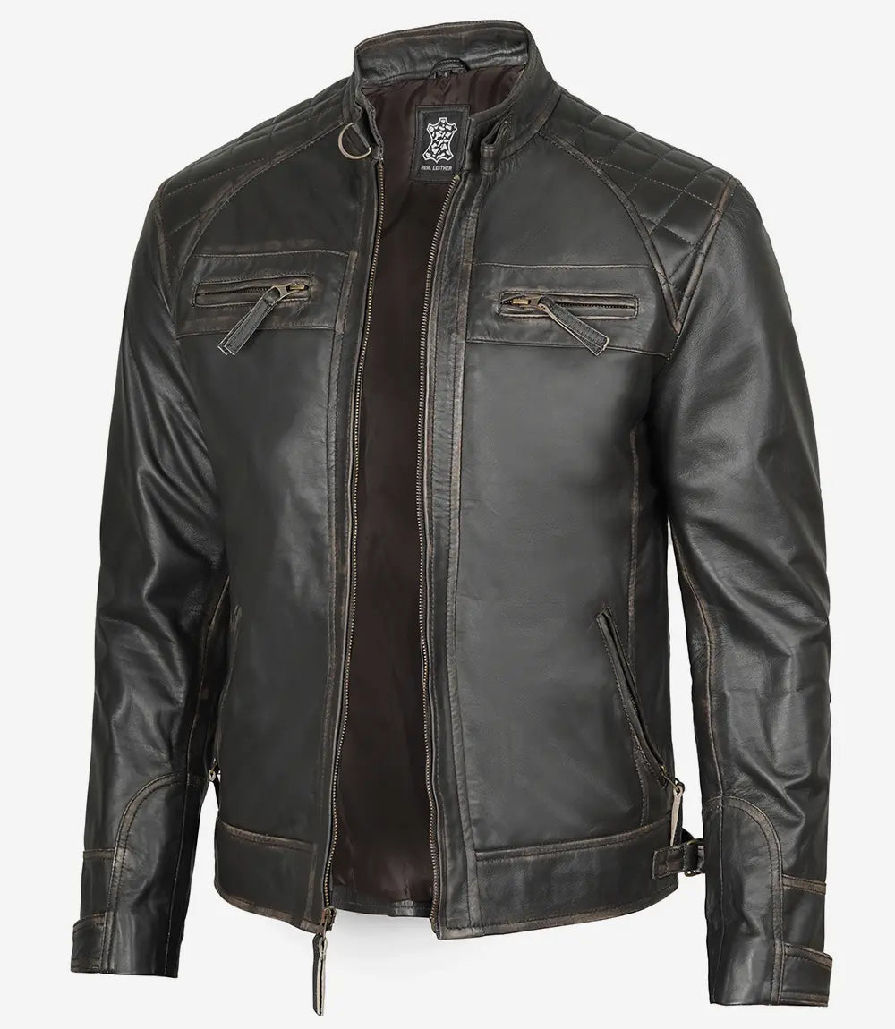 Men’s Dark Brown Quilted Cafe Racer Leather Jacket
