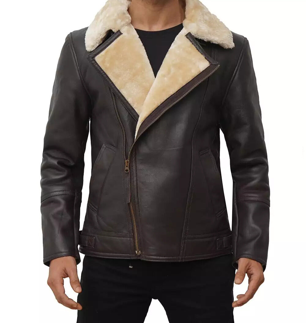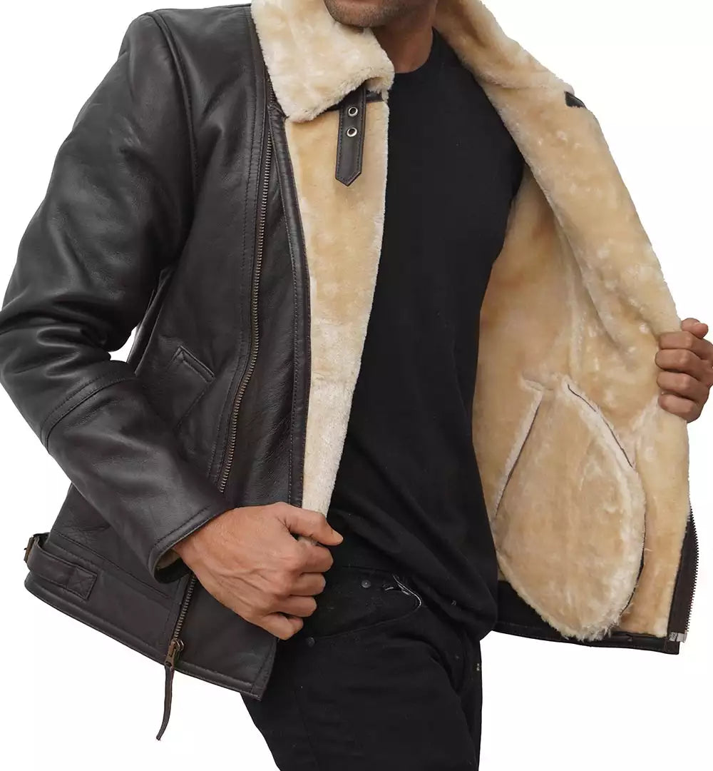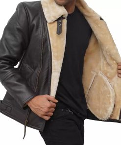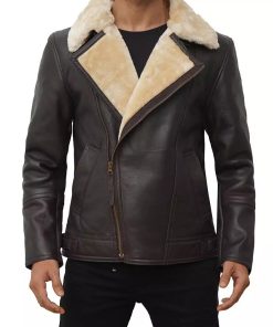 Men’s Dark Brown Shearling Bomber Leather Jacket