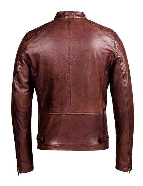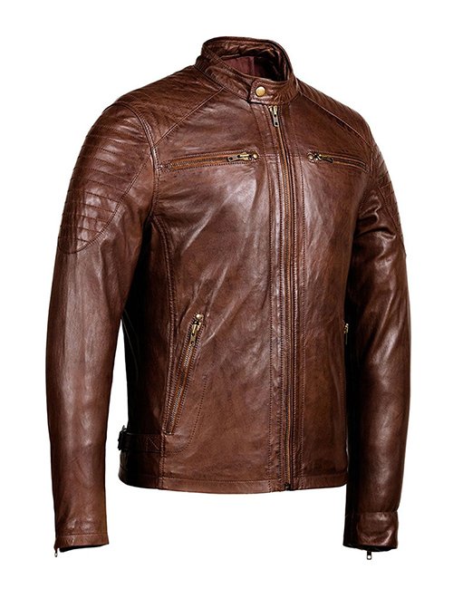 Men’s Distressed Brown Cafe Racer Retro Motorcycle Jacket