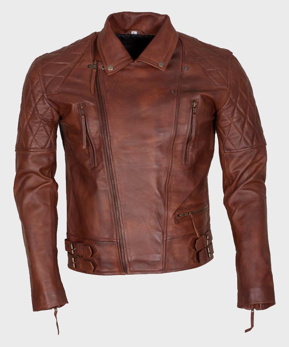 Mens Distressed Brown Motorcycle Jacket
