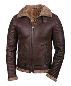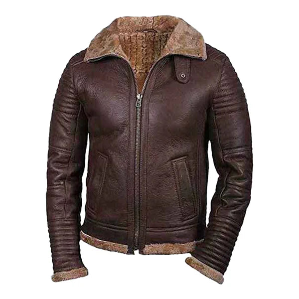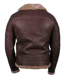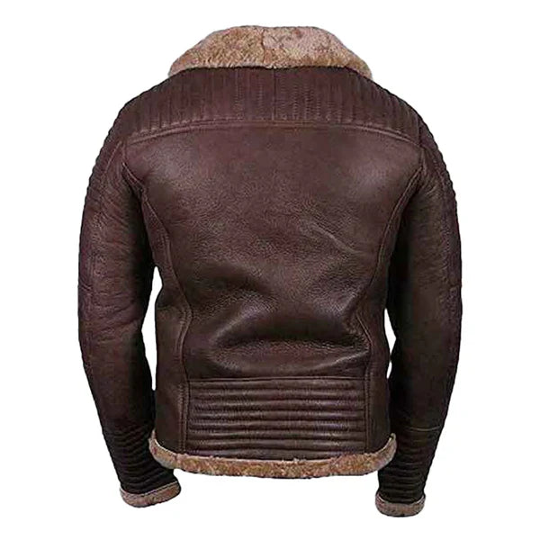 Men’s Faux Shearling Brown Zipper Leather Jacket