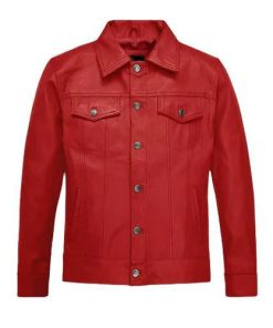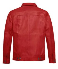 Men’s Faux Trucker Red Leather Jacket