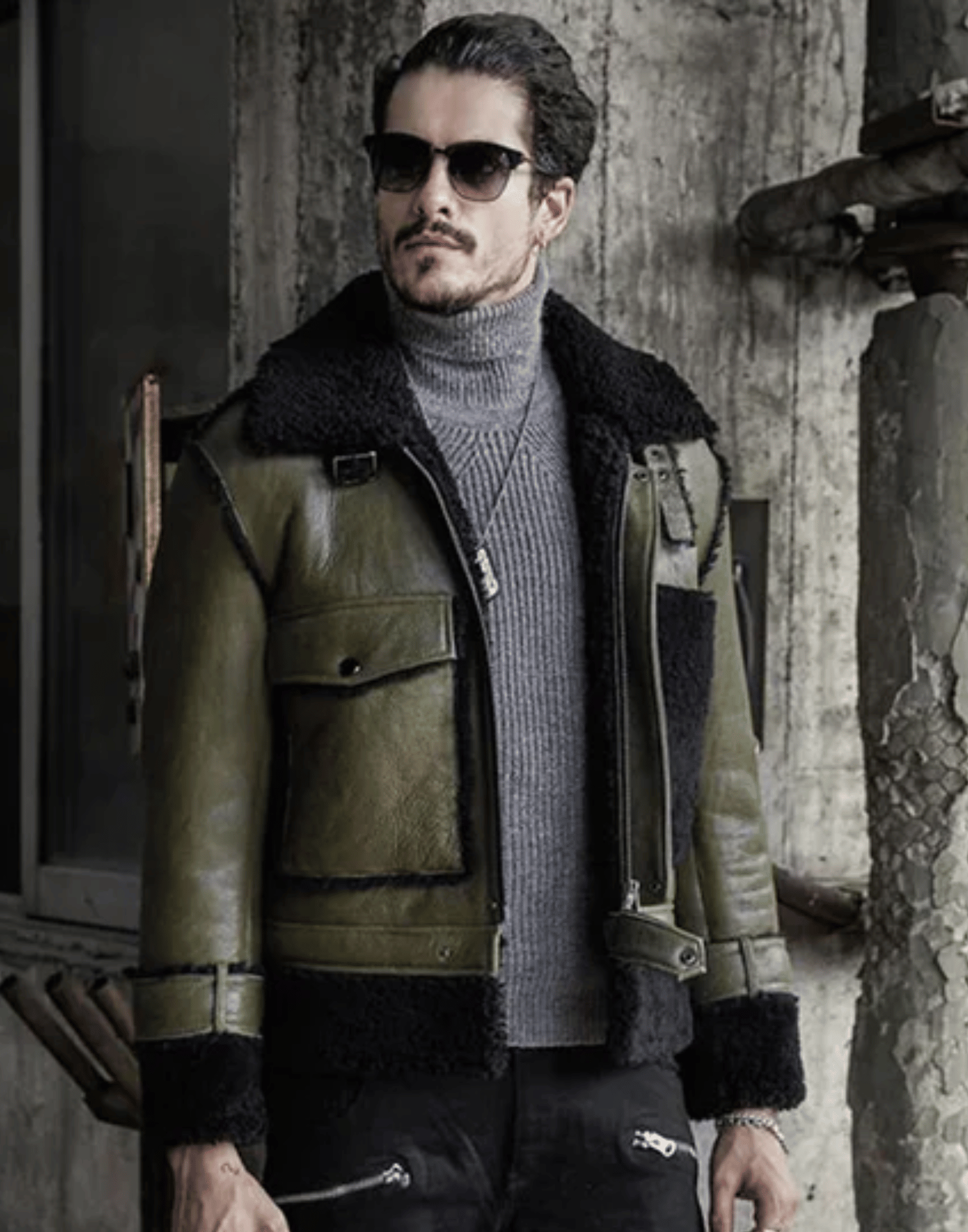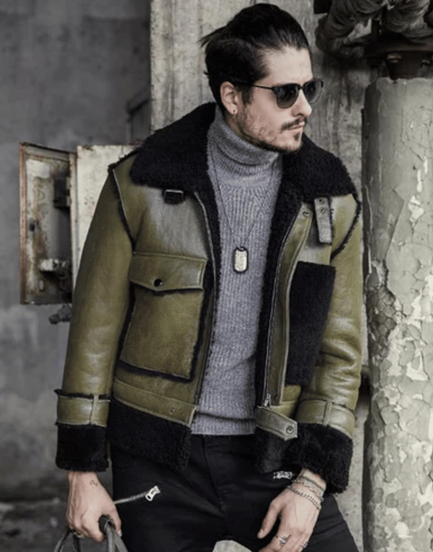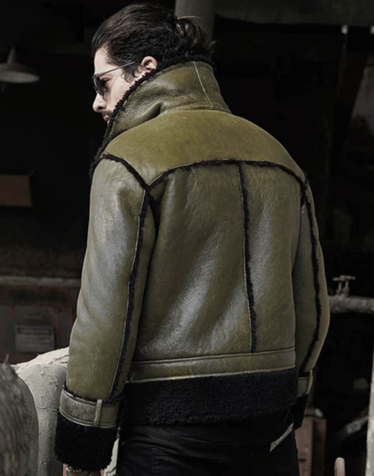 Mens Green RAF Flying Pilot Shearling Leather Jacket