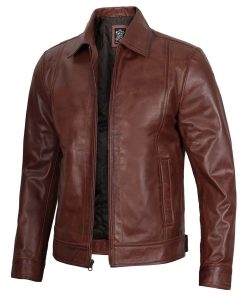 Men’s Harrington Brown Leather Jacket