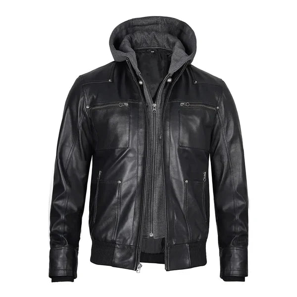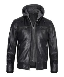 Men’s Hoodie Grey Leather Jacket