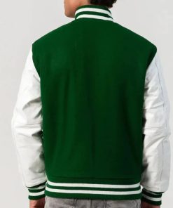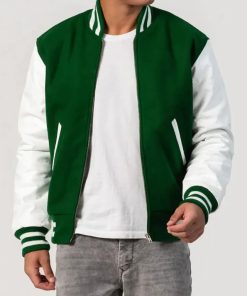 Men’s Kelly Green & White Leather Sleeves Wool Varsity Jacket