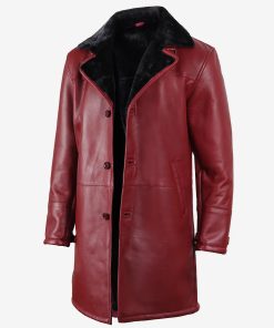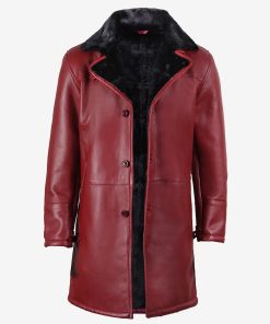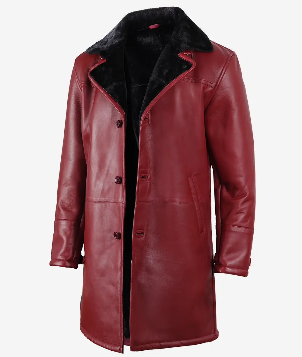 Men’s Leather Maroon Coat with Black Shearling Fur