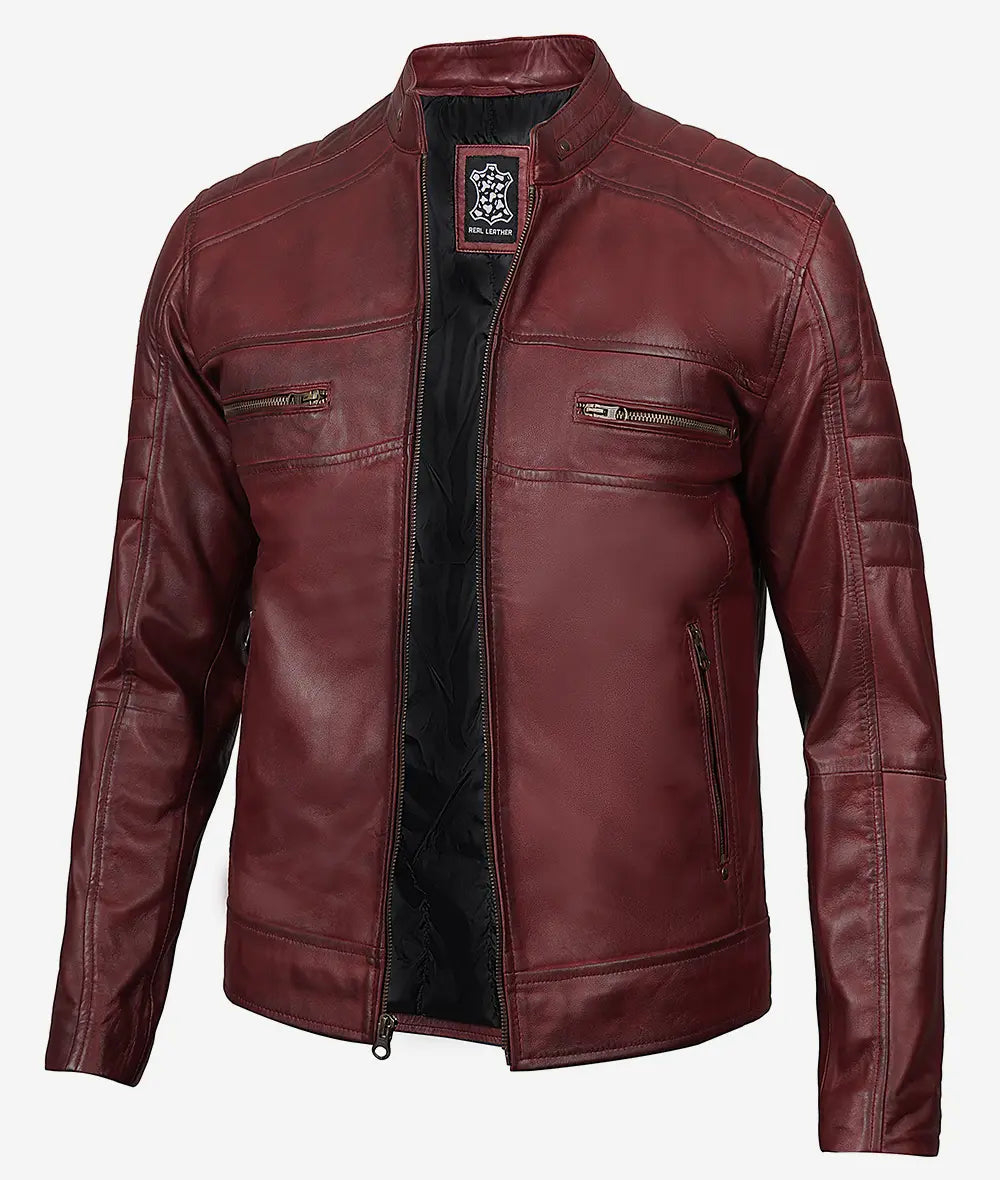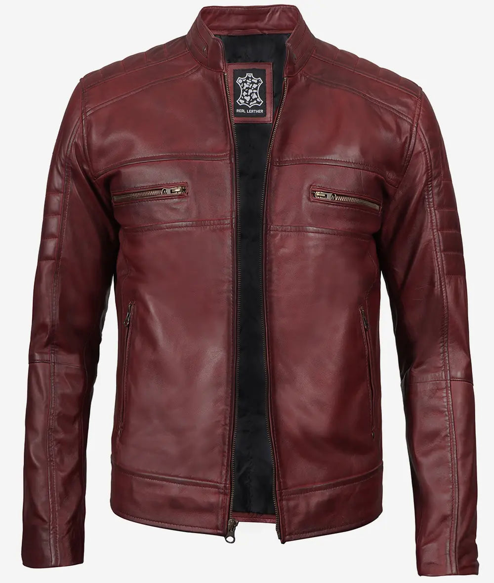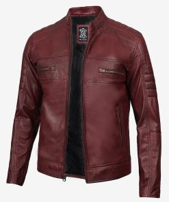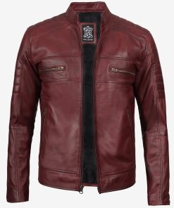 Men’s Maroon Cafe Racer Leather Jacket