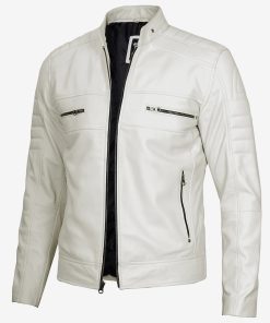 Men’s Off White Cafe Racer Leather Jacket – Real Leather