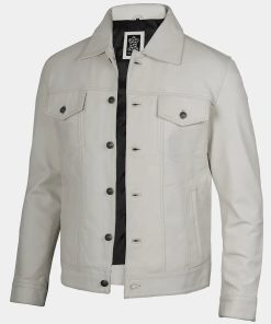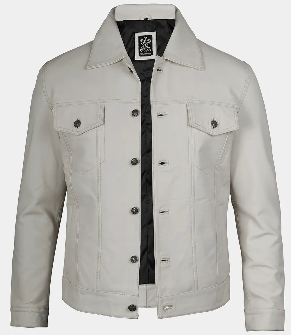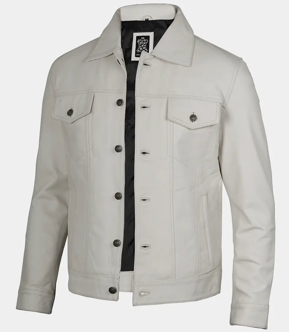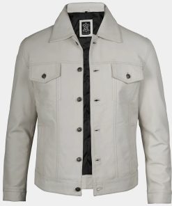 Men’s Off White Four Pockets Real Leather Trucker Jacket