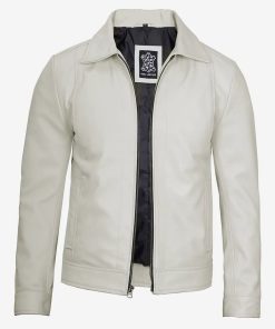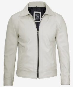 Men’s Off White Shirt Collar Real Leather Jacket