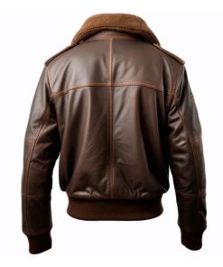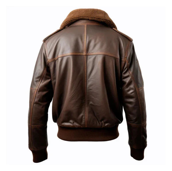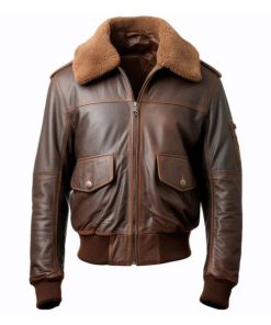 Men’s Pilot Faux Shearling Lapel Brown Bomber Leather Jacket