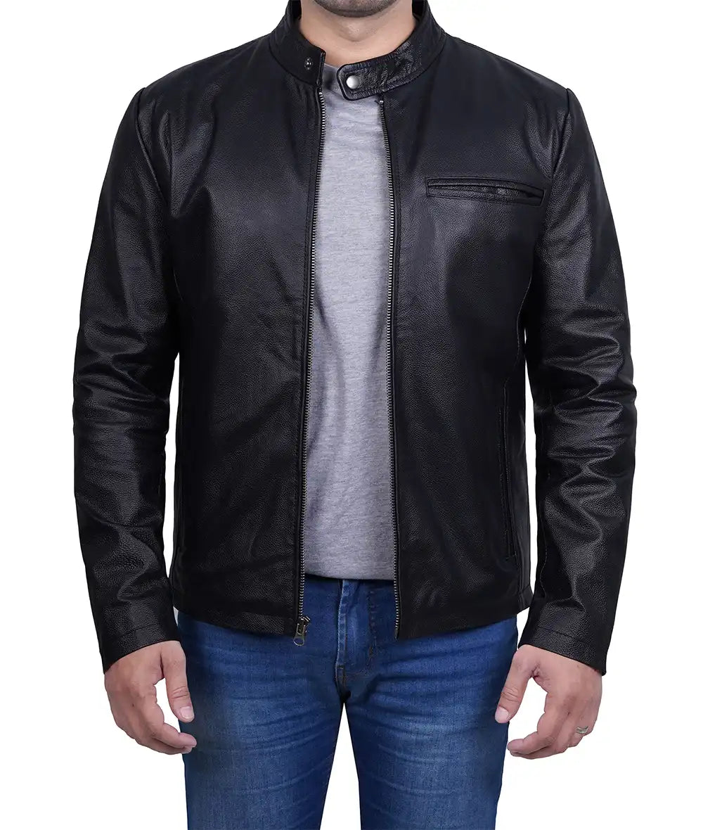 Men’s Premium Black Cowhide Cafe Racer Leather Jacket