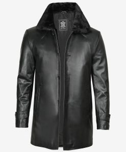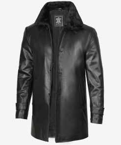 Men’s Premium Black Leather Jacket with Shearling Collar
