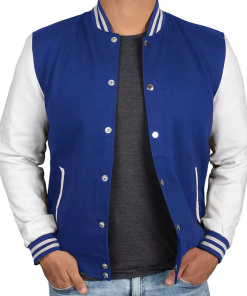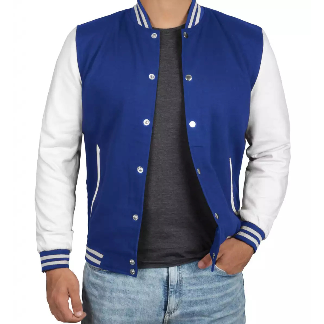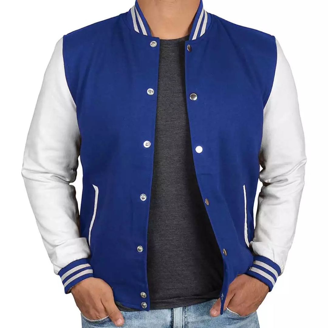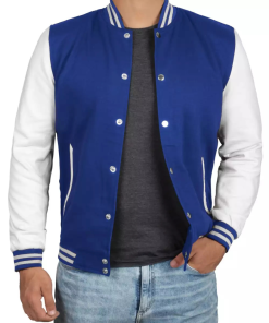 Men’s Royal Blue White-Sleeved Varsity Jacket – Baseball Style Jacket