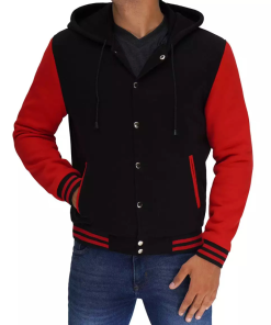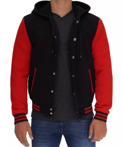 Men’s Salerno Black and Red Varsity Jacket with Hood