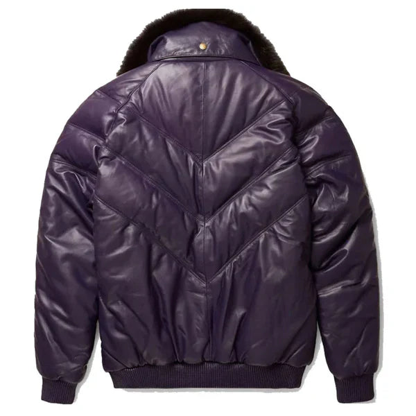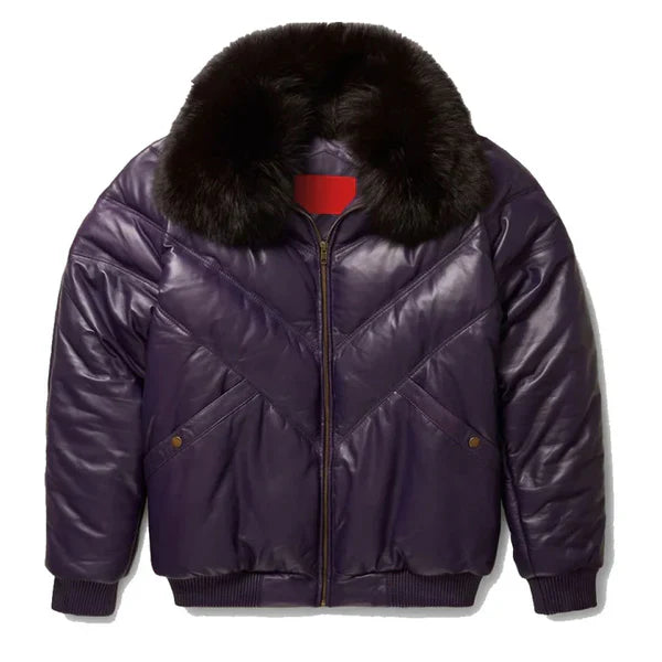 Men’s V-Bomber Faux Shearling Purple Leather Jacket