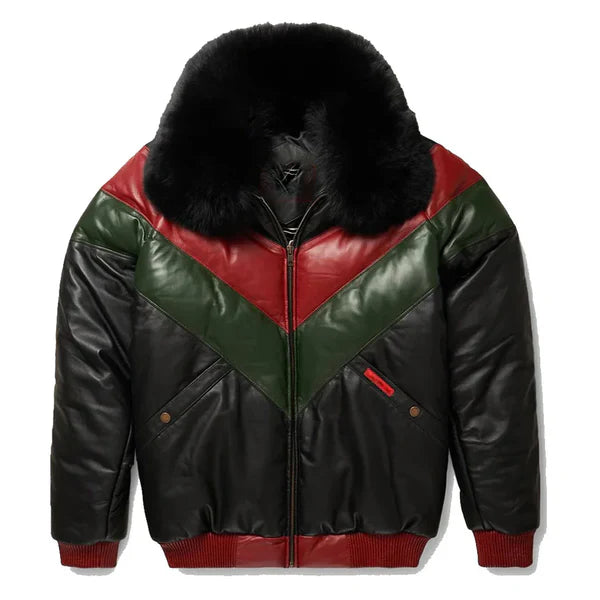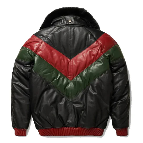 Men’s V-Bomber Multicolor Faux Shearling Leather Jacket