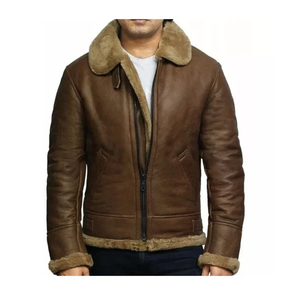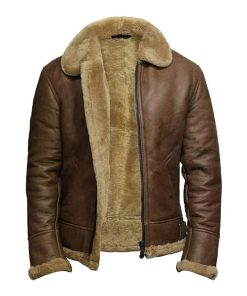 Men’s Vintage Faux Shearling Brown Bomber Leather Jacket