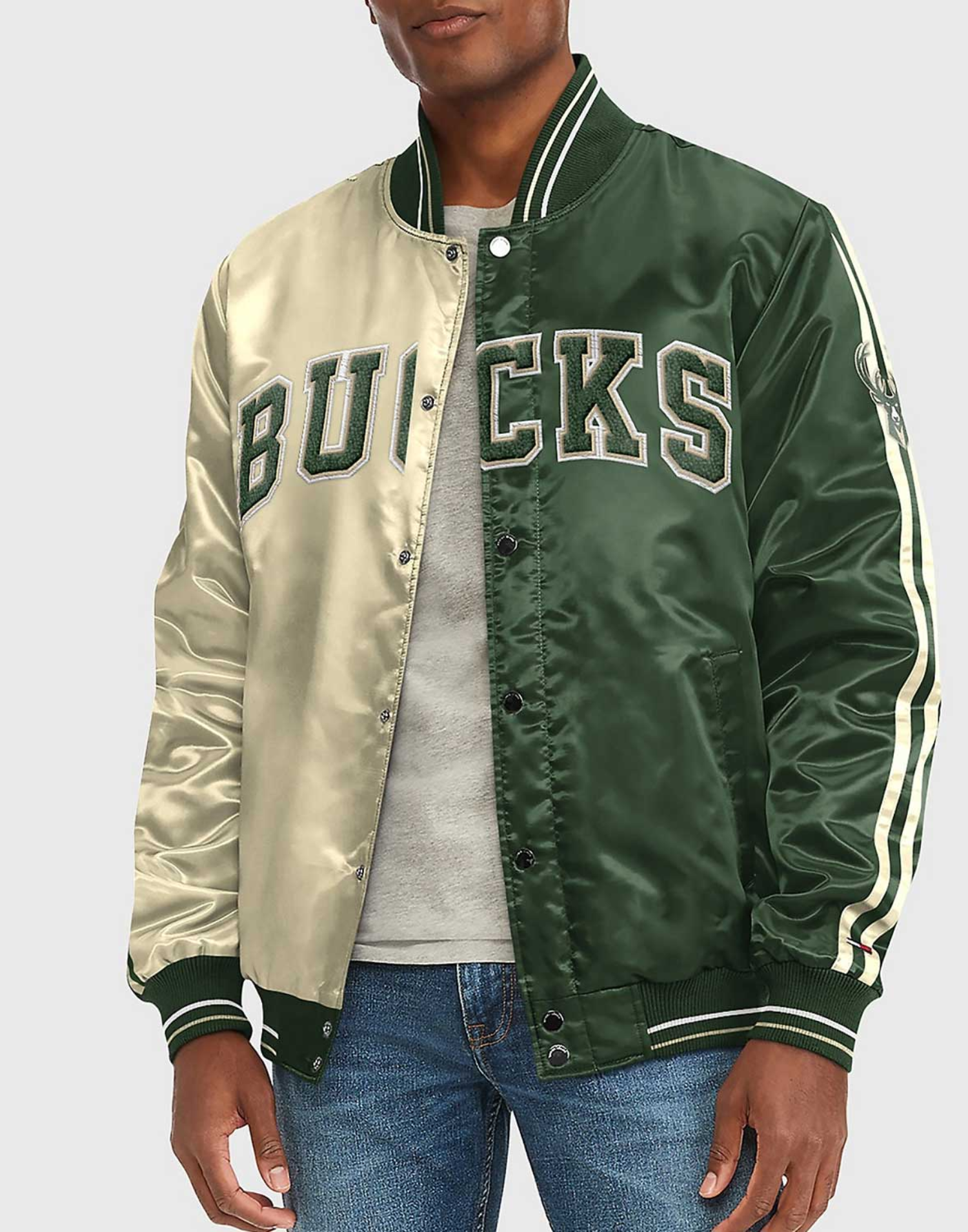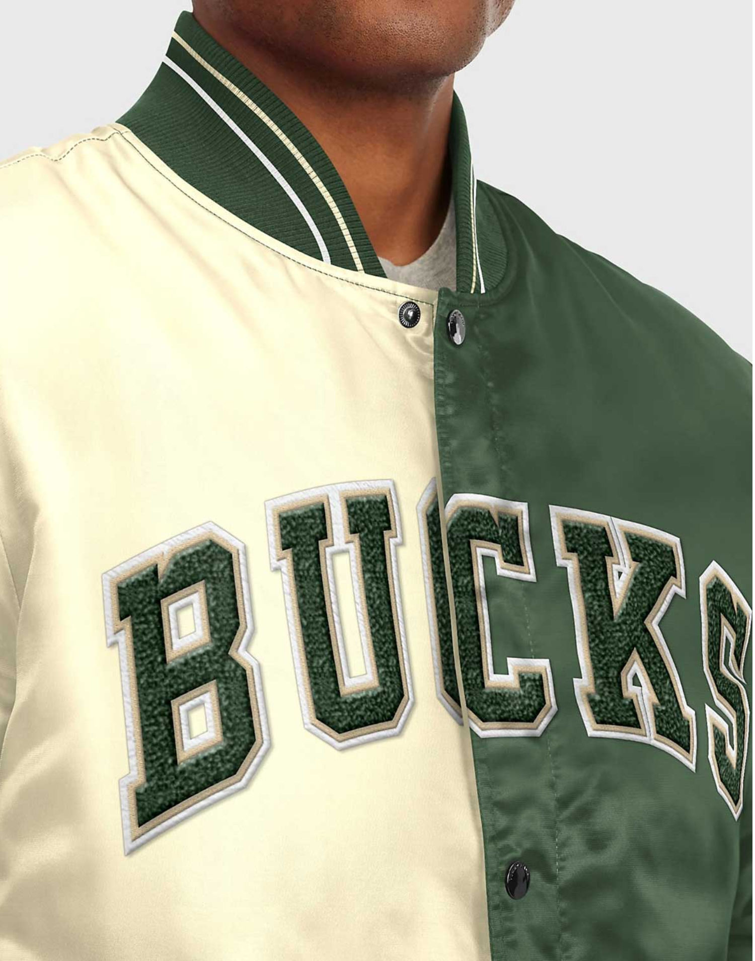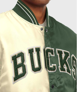 Milwaukee Bucks Varsity Satin Off White/Green Jacket