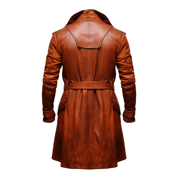 Modern Open Hem Casual Brown Leather Coat