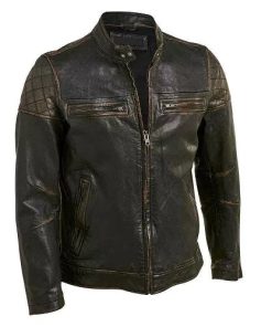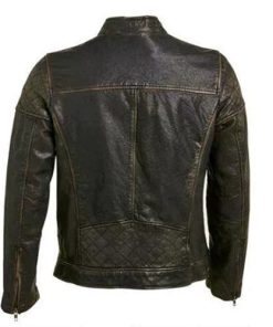 Motorcycle Cafe Racer Distressed Black Quilted Genuine Leather Jacket