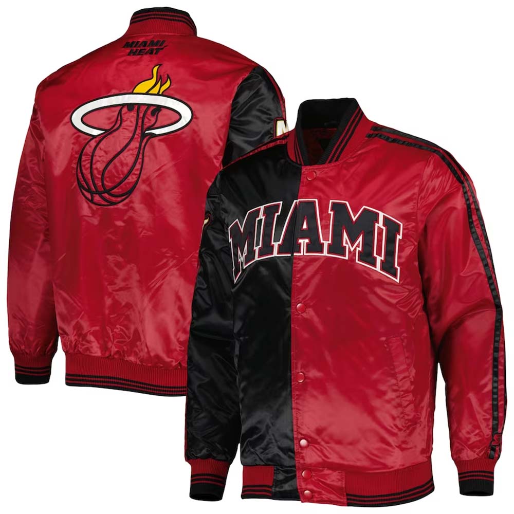 This Men’s Miami Heat jacket by Starter is crafted from high-quality satin material, featuring a full-snap closure for convenience. Its bold black and red design proudly displays the Miami Heat logo, making it the perfect addition to any fan’s wardrobe. Stay warm and stylish with this jacket.