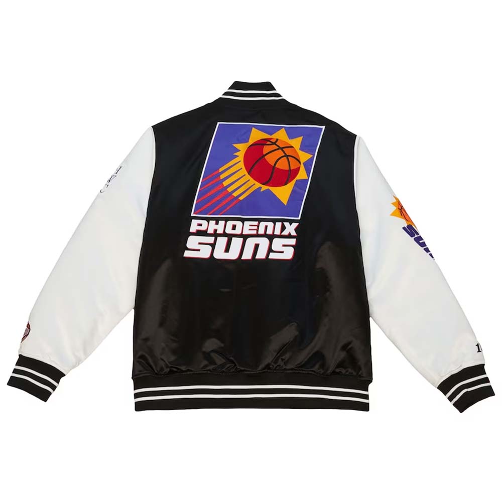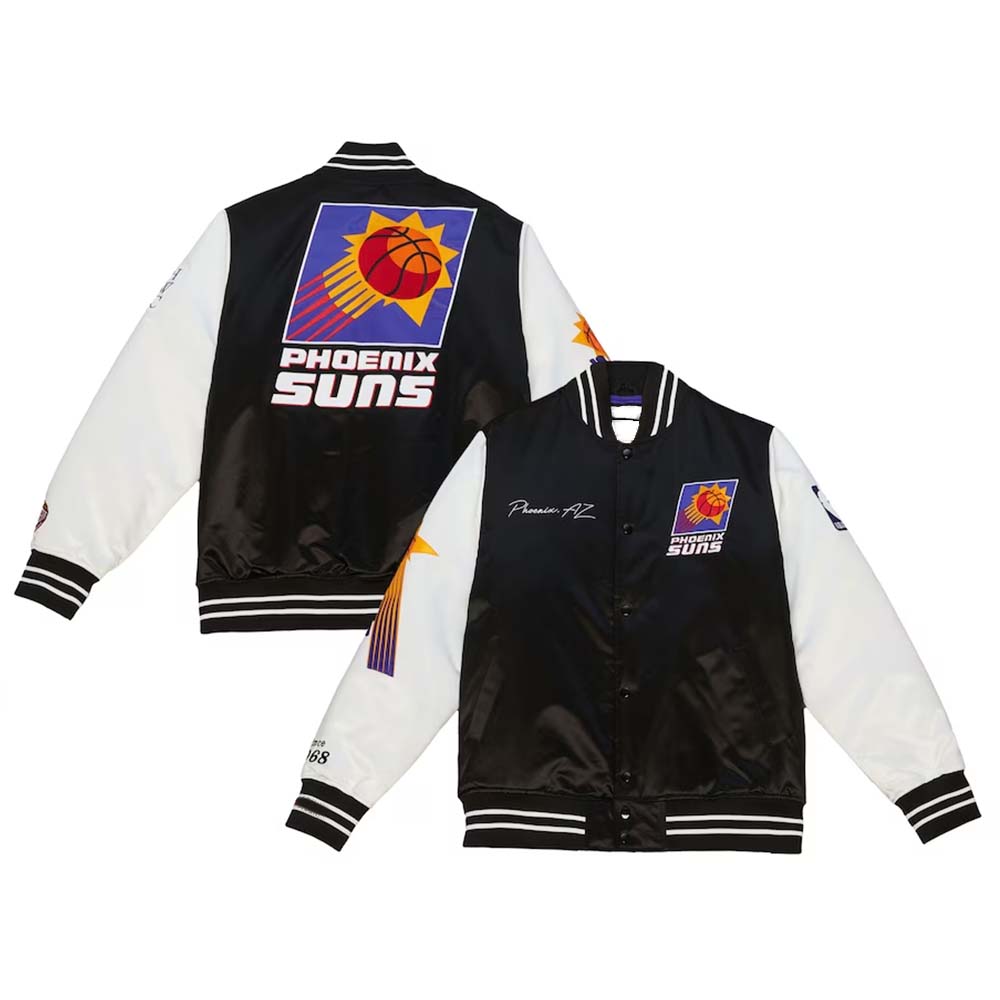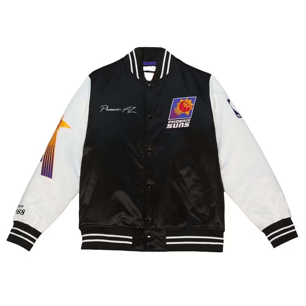 NBA Men’s Mitchell & Ness BlackWhite Phoenix Suns Team Origins Satin Full-Snap Varsity Jacket by TJS