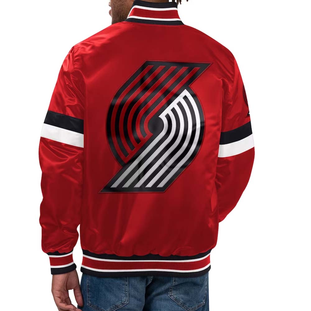 NBA Men’s Portland Trail Blazers Starter Red Home Game Satin Full-Snap Varsity Jacket by TJS