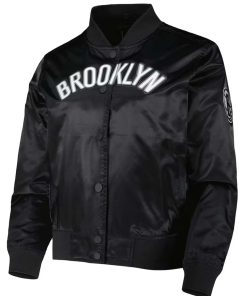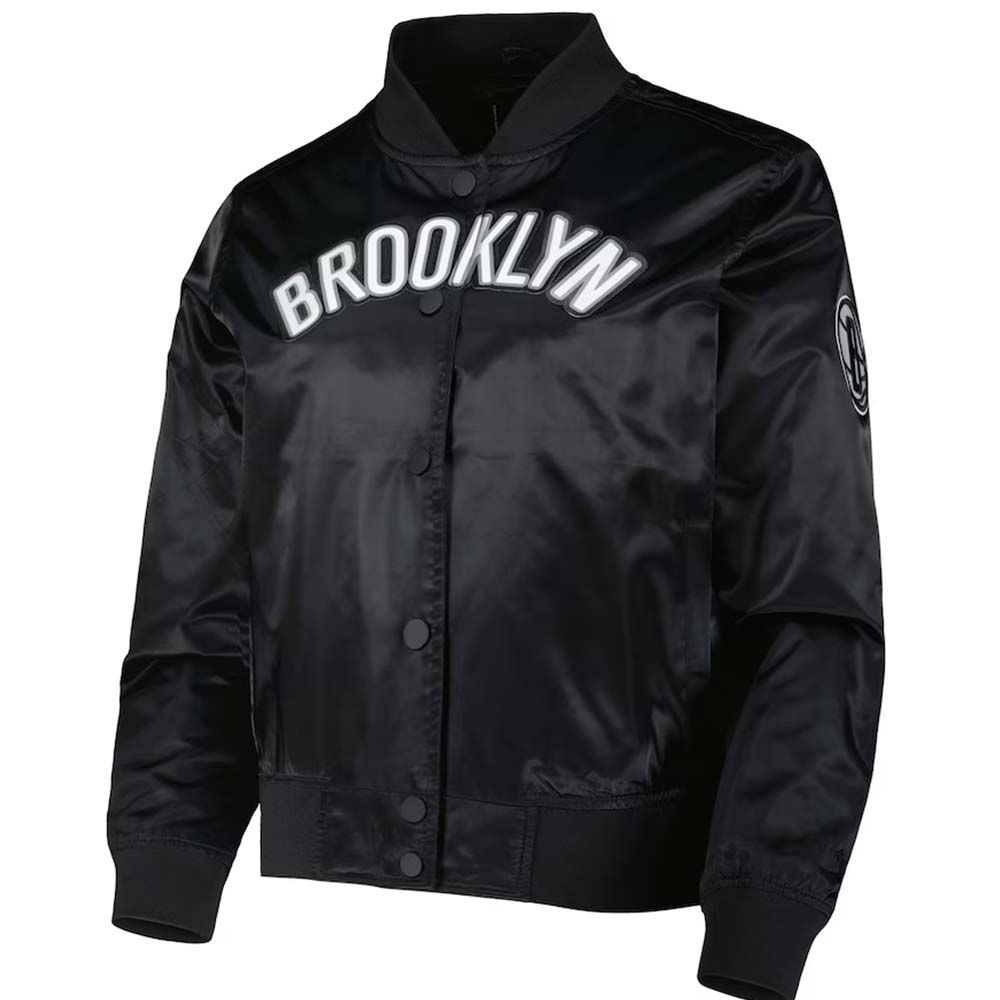 NBA Women’s Pro Standard Black Brooklyn Nets Classics Satin Full-Snap Jacket by TJS