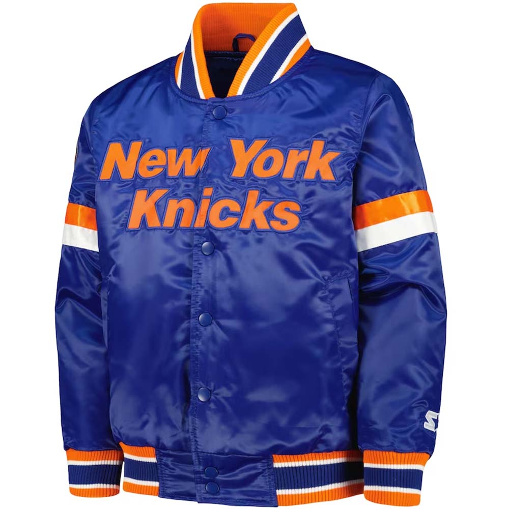 NBA Youth New York Knicks Starter Blue Home Game Varsity Satin Full-Snap Jacket by TJS