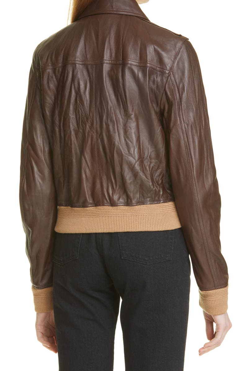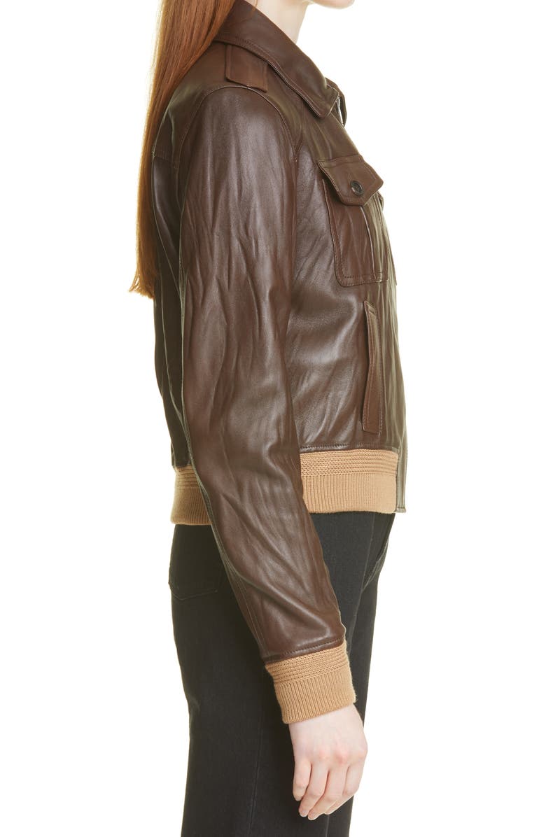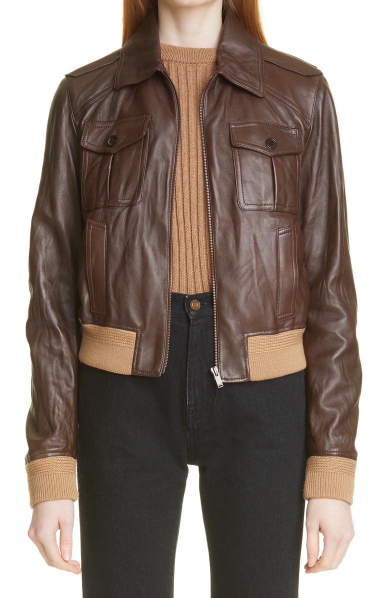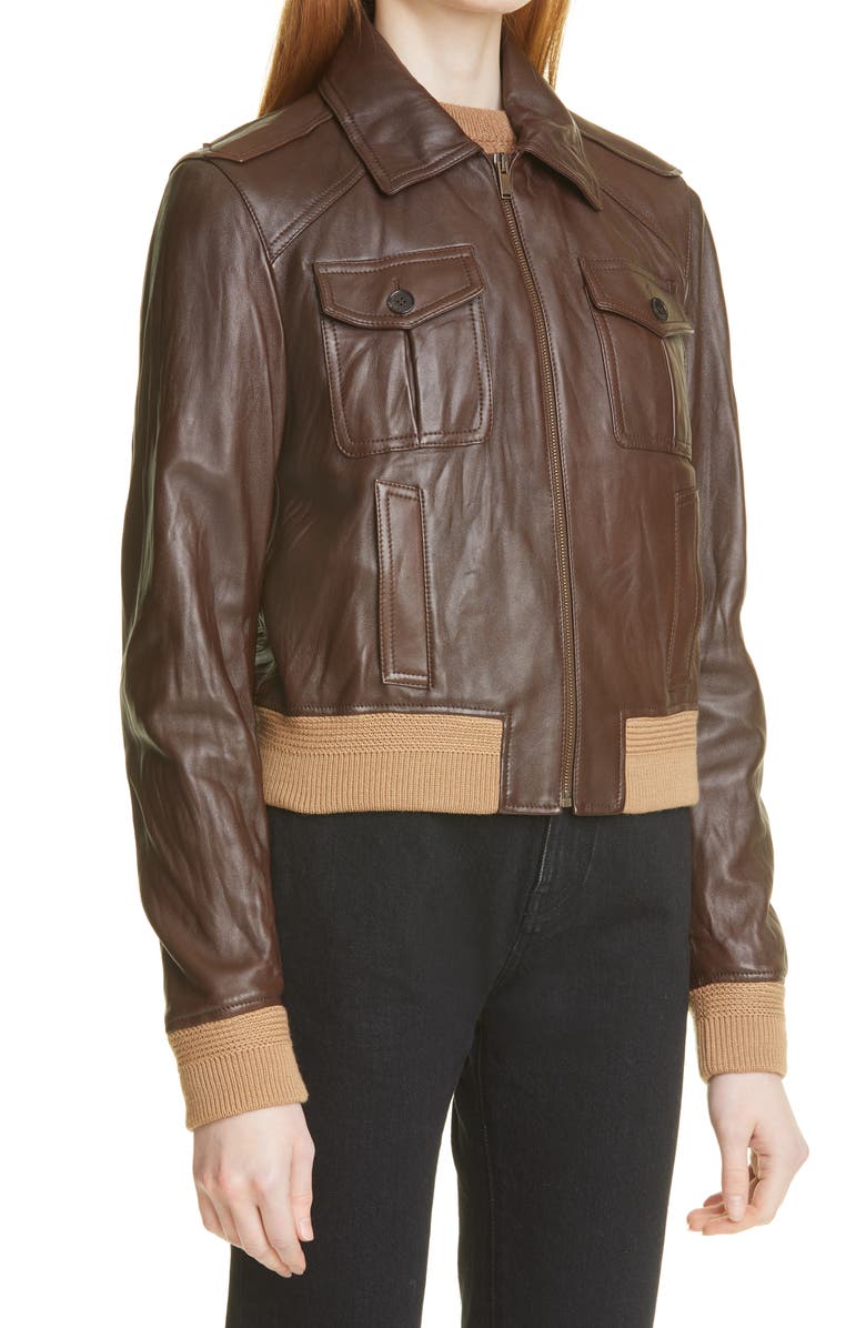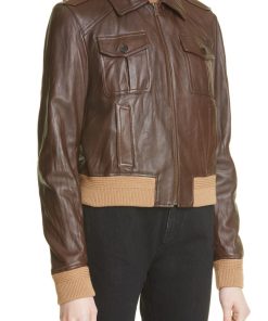Patch Pocket Leather Bomber Jacket