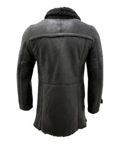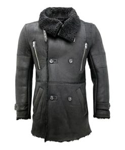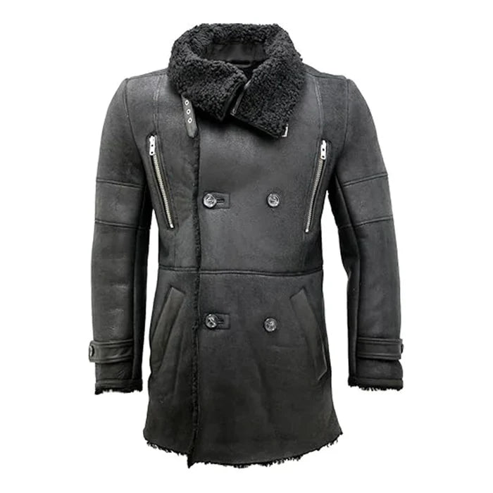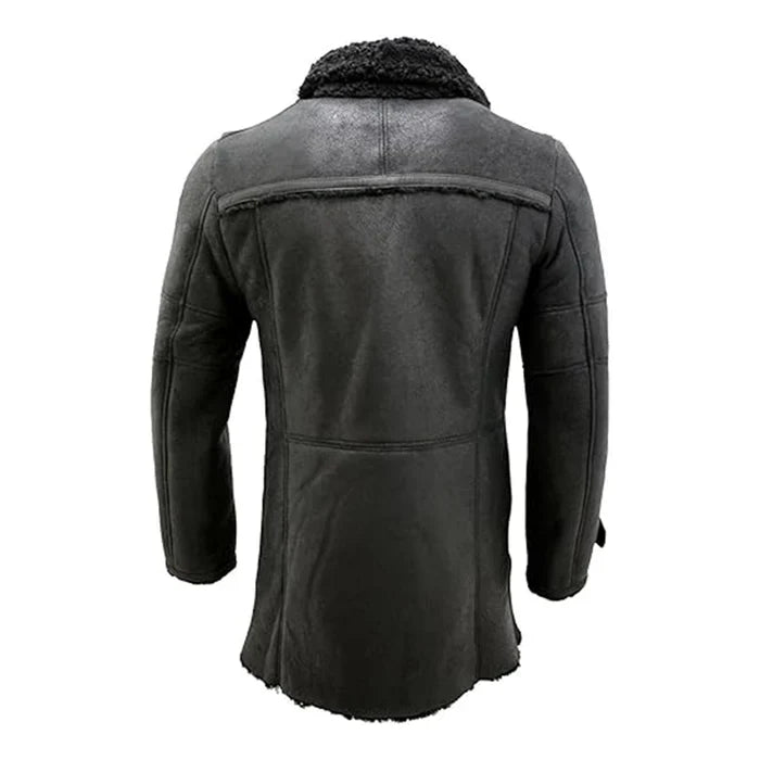Reefer Double-Breasted Warm Black Leather Coat