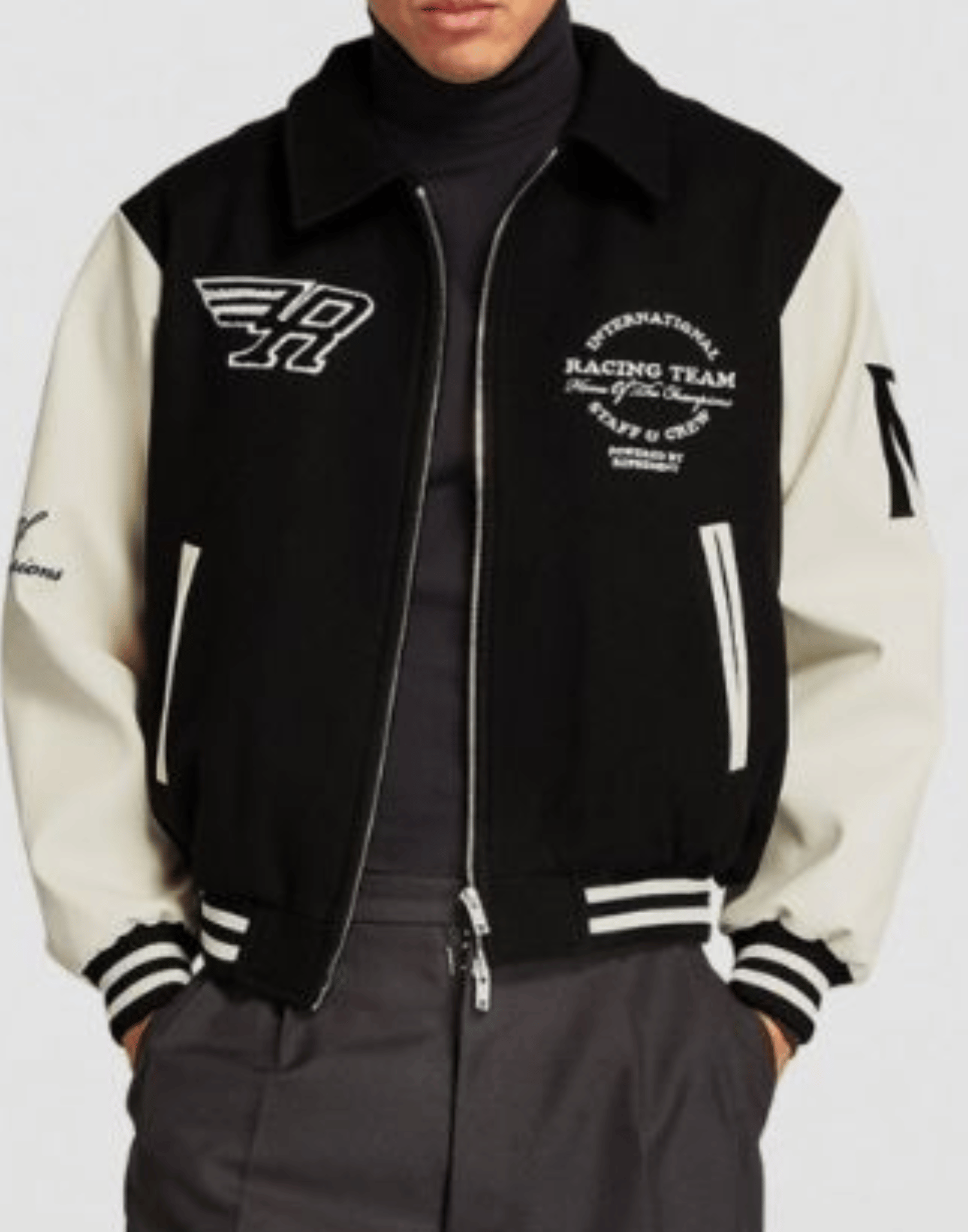 Represent Racing Team Varsity Jacket Black and White