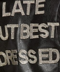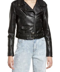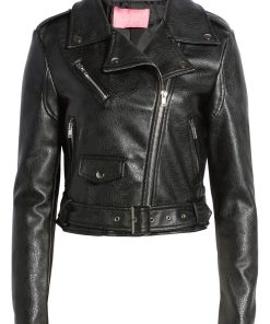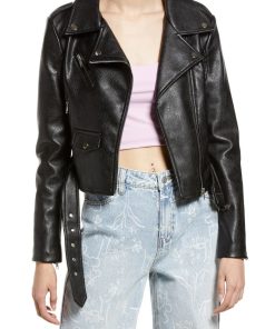 Rhinestone Faux Leather Belted Moto Jacket