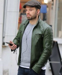 Sebastian Stan Green Leather Jacket