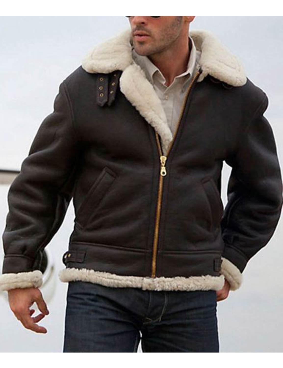 Sylvester Stallone Shearling Bomber Aviator Leather Jacket