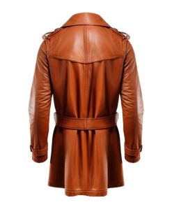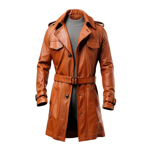 Tan Classical Long Leather Winter Coat