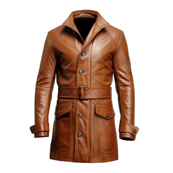 Vintage Big Pockets Brown Long Leather Coat