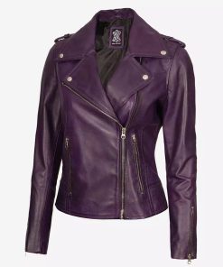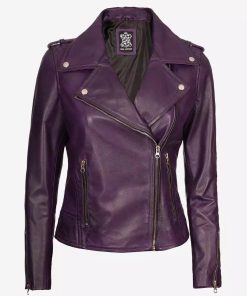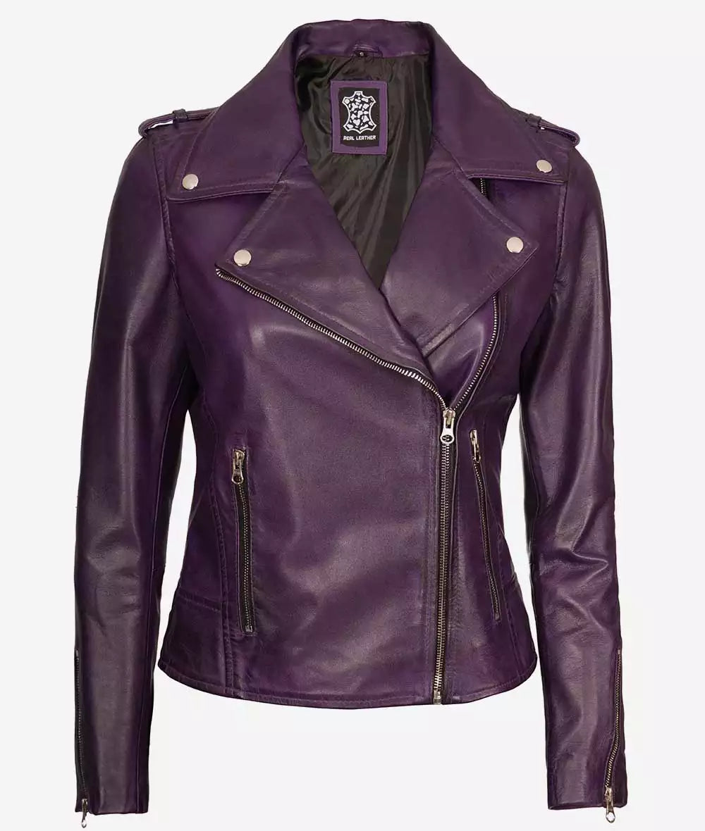 Women’s Asymmetrical Purple Lambskin Motorcycle Jacket